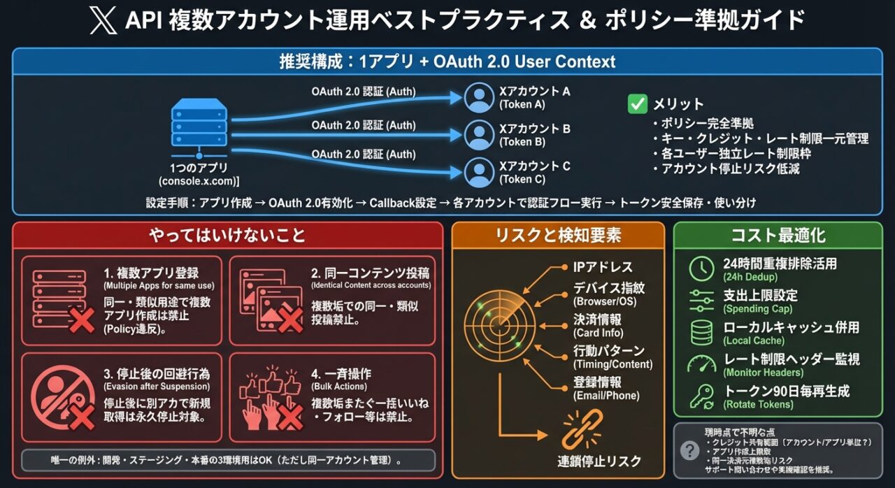 Xが公式に推奨しているのは、1つのアプリケーションでOAuth 2.0 User Contextを使い、複数のXアカウントを認証する方法です。